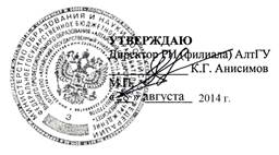 МИНИСТЕРСТВО ОБРАЗОВАНИЯ И НАУКИ РОССИЙСКОЙ ФЕДЕРАЦИИ федеральное государственное бюджетное образовательное учреждение высшего профессионального образования «Алтайский государственный университет» Рубцовский институт (филиал)