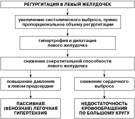 • Диагностика Жалобы пациента: головокружения; обмороки; сердцебиение; ощущение усиленной пульсации шейных сосудов; одышка; приступы удушья; слабость; быстрая утомляемость. Отмечается стенокардия. Осмотр, пальпация, перкуссия: бледность кожи и слизистых; усиленная пульсация сонных артерий («пляска каротид»), синхронное с пульсацией покачивание головы; капиллярный пульс (синхронное с пульсом изменение окраски ногтевого ложа, изменение степени гиперемии кожи после небольшого трения или щипка); высокий скорый пульс; повышение систолического давления в сочетании со снижением диастолического – увеличение пульсового давления (чем больше величина пульсового давления, тем более выражена степень регургитации); усиленный разлитой верхушечный толчок. Аускультация сердца: диастолический шум в 3–4‑м межреберьях у левого края грудины. Шум мягкий, дующий, следующий сразу после 2‑го тона. Шум лучше всего выслушивается при горизонтальном положении пациента, а также при задержке дыхания в фазе выдоха. При значительном уплотнении стенок аорты шум может лучше выслушиваться во 2‑м межреберье справа от грудины (в классической точке аускультации аортального клапана); ослабление 2‑го тона (вплоть до его полного исчезновения); ослабление 1‑го тона. Электрокардиография: признаки гипертрофии левого желудочка. Рентгенологическое исследование органов грудной клетки: в период компенсации – размеры сердца не увеличены или незначительно увеличен левый желудочек; в период клинических проявлений – аортальная конфигурация сердца – выраженная талия; увеличение левого желудочка; диффузное расширение тени аорты в начальной части с усилением ее пульсации; кальциноз в проекции аортального клапана; в поздних стадиях порока – увеличение левого предсердия и правого желудочка; признаки легочной гипертензии (венозной). Эхокардиография: изменения створок аортального клапана (деформация, утолщение, нарушение подвижности, вегетации, кальциноз); регургитация в полость левого желудочка; гипертрофия миокарда левого желудочка, межжелудочковой перегородки; увеличение размеров левого желудочка; расширение корня аорты; в поздних стадиях порока – увеличение левого предсердия; увеличение правых отделов; повышение давления в легочной артерии. Внутрисердечное исследование: катетеризация полостей сердца – снижение диастолического давления в аорте; увеличение сердечного выброса; увеличение КДД в левом желудочке; повышение давления в левом предсердии; повышение давления в легочной артерии и легочных капиллярах; контрастная аортография – регургитация в полость левого желудочка. • Осложнения недостаточности аортального клапана: острая коронарная недостаточность; инфекционный эндокардит.