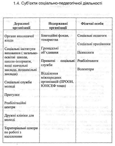 Соціально-педагогічна діяльність спрямована на створення сприятливих умов соціалізації, всебічного розвитку особистості, задоволення її культурних і духовних потреб чи відновлення соціально схвалених способів життєдіяльності людини. Соціально-педагогічна діяльність є різновидом багаточисленних видів професійної діяльності. Кожна професійна діяльність характеризується наявністю специфічних, притаманних лише їй компонентів, має свою певну структуру. Спираючись на надбання психологічних та педагогічних наук, в системі соціально-педагогічної діяльності в першу чергу виділяють її суб'єкт та об'єкт. Професійна діяльність не є спонтанною чи фрагментарною. Вона спрямована на досягнення певних цілей та результатів, які обумовлюються метою конкретної діяльності. Загальна мета соціально-педагогічної діяльності полягає у створенні оптимальних умов соціалізації особистості. Подальша конкретизація цієї мети відбувається у завданнях. Серед пріоритетних завдань соціально-педагогічної діяльності можна виокремити: - збереження та зміцнення фізичного, психічного, соціального здоров'я особистості; - створення сприятливих умов в мікросоціумі для розвитку здібностей та реалізації можливостей особистості; - надання комплексної соціально-психолого-педагогічної допомоги та підтримки; - попередження та локалізація негативних впливів соціального середовища на особистість. Зміст соціально-педагогічної діяльності розкривається у процесі соціальної адаптації, профілактики, реабілітації, ресоціалізації та соціально-культурної анімації в певних вікових та соціальних групах. Досягнення мети, виконання завдань і реалізація змісту соціально-педагогічної діяльності здійснюється за допомогою сукупності методів, прийомів, засобів та форм. Вони є складовими різноманітних технологій діяльності соціального педагога.