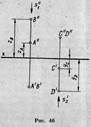 Билет №13 с 32 Метод конкурирующих точек используется в начертательной геометрии для определения взаимной видимости двух геометрических фигур. Конкурирующими точками называются такие точки пространства, у которых совпадают какие-либо две одноименные проекции. Так, на рис. 46 показаны конкурирующие точки А к В (совпадают горизонтальные проекции А' = В') и С, D (совпадают фронтальные проекции С" ≡ D").