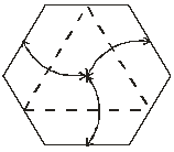 2. Наметить три линии сгиба, совмещающие стороны шестиугольника через одну с соответствующей диагональю (рис. 2).