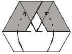 7. рис. 6 Так как у треугольника нечетное число сторон, а при построениях желательно, чтобы число карманов и вставок совпадало, то второй вариант модуля получается из этого выворачиванием вовнутрь одного из треугольников-вставок (рис. 7).