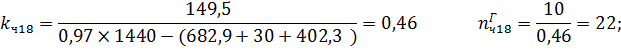 Где µповт - коэффициент, учитывающий повторную сортировку части вагонов в процессе окончания формирования с горки и из-за недостатка числа и длины сортировочных путей (µповт = 1,01); Tсущ- общее время занятия горки операциями, зависящими от размеров движения (964,6 мин);