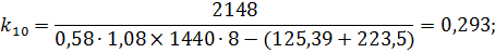 Где пр1, пр2 - число распускаемых с горки составов, поступающих соответственно с подходов 1,2 и т.д. (принимается 10 и 4 соответственно); к - коэффициент использования перерабатывающей способности горки. Определим коэффициент использования перерабатывающей способности горки (k):