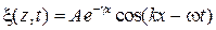 Рисунок 2. Гармоническая волна в собственной системе отсчета. При учете затухания в линейной среде амплитуда волны уменьшается с расстоянием по экспоненциальному закону