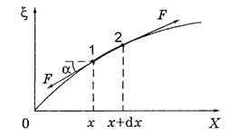 Рассмотрим малый участок струны«1,2», концы которого имеют координаты