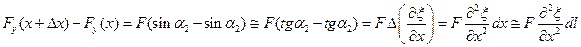 Мы воспользовались тем обстоятельством, что колебания струны достаточно малые, так что угол наклона к оси В силу малости искривления струны величину вызванного ей удлинения Разложим силы натяжения