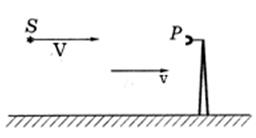 Источник S, испускающий сигналы с частотой ν, движется с постоянной скоростью