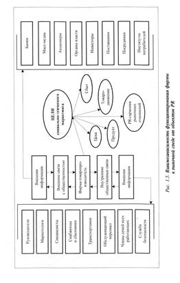 Социально-этический маркетинг — зеркальное отражение новой концепции товаропроизводителя, для которого интересы общества приобретают решающее значение при оценке коммерческого успеха. К основным коммерческим направлениям практической реализации PR на уровне функционирования фирмы следует отнести: • целенаправленный комплекс форм и методов улучшения контактов между фирмой и ее многочисленными целевыми аудиториями; • разработку конструктивных рекомендаций по созданию общественного имиджа фирмы; • реализацию мер, направленных на устранение барьеров, излишних помех (вредные, ложные слухи); • подготовку мероприятий, направленных на расширение сферы влияния за счет устранения различных причин недопонимания, активизации средств пропаганды, рекламы, выставок, видео- и кинопоказов лучших фирменных образцов и достижений. Из приведенного рисунка видно, что цели социально-этического маркетинга товаропроизводителя, работающего на рынке, формируются с учетом тесной взаимосвязи основных его составляющих — цены, продукта, системы формирования сбыта, организации товародвижения и усилий компании в части гармонизации рыночных отношений. Процветание фирмы возможно в тесной взаимосвязи перечисленных основных составляющих маркетинга с состоянием общественного мнения, на основе которой вырабатывается корпоративная стратегия, позволяющая соединить воедино общественно-социальные интересы с частнопредпринимательскими. Важно заметить, что PR способствует не столько продвижению продукта на рынке, сколько повышению общего рейтинга товаропроизводителя в глазах общественности. Если маркетинговый элемент «товародвижение» имеет одну целевую аудиторию — собственных клиентов, то PR выходит на многочисленные целевые аудитории, в которых потребители далеко не самая главная целевая группа. PR появился как совокупность приемов, обеспечивающих социальную поддержку конкретным товарным программам и проектам. Но общественное мнение по отношению к товару обусловлено широким контекстом состояния общества в целом, отношением к фирме, ее руководству и популярности. Поэтому круг вопросов, решаемых PR-службами, далеко выходит за рамки маркетинговых подразделений на уровень первых лиц и напрямую связан с философией рыночного участия и миссией фирмы. Современная PR-деятельность переросла рамки маркетинга и оформилась в самостоятельную крупномасштабную функцию управления, способствующую установлению гармонии в отношениях с обществом. Следовательно, PR выражает совокупную деятельность за грани бизнеса и социально-этических технологий, способствующих получению коммерческого успеха с учетом социальных потребностей общества. PR-философия пронизывает все этапы рыночного воспроизведет ва: от идеи нового товара или услуги до окончательной реализации. Поэтому своевременное использование основных направлений PR прямо влияет на эффективность функционирования маркетинга как комплексной системы организации производства и сбыта продукции, построенной на основе предварительных рыночных исследований совокупных потребностей покупателей. Неразрывность взаимосвязи маркетинга и PR подтверждаете тем, что именно PR служит результативным механизмом и действенным помощником в преодолении проблем сложного продвижения товаров от изготовите