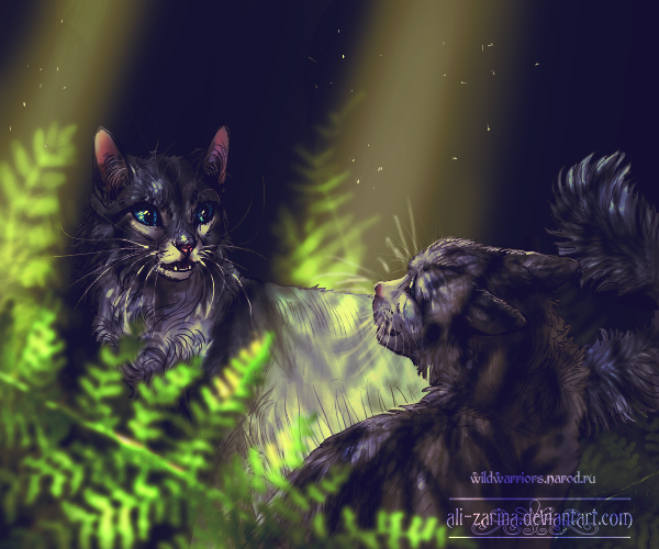 - То есть ты все это время была нашей целительницей, ни разу не встретившись со Звездными предками? Мотылинка отрицательно покачала головой: - Вам есть во что верить, - протянула она, - как и мне. Те, кого вы видите в своих снах, защищают и направляют вас. Я обходилась без этого. Я умею исцелять и заботиться о соплеменниках, и этого всегда было достаточно для служения моему племени. Невидимая Звезда пребывала в замешательстве. Разумеется, этого и быть не может! Целитель, не верящий в Звездное племя? Почему во время церемонии получения девяти жизней никто из предков-воителей не предупредил ее об этом? Если это действительно так, они должны об этом знать. А как же пророчества? Посылало ли их Звездное племя, зная, что Мотылинка этого не заметит? Почва начала уходить у нее из-под ног. Невидимой Звезде требовалось подтверждение; она решительно сделала шаг, намереваясь вернуться к Озеру. - Идем, пора домой. Мотылинка шла за ней след в след. Невидимой Звезде послышалось, будто целительница тихо промурлыкала: «Мне жаль», но сказать ей в ответ было решительно нечего. В тишине они шли быстро, карабкаясь и перепрыгивая с камня на камень, пока снова не ступили на свежую невысокую траву земель племени Ветра. Со стороны узкого ручейка, служившего границей, повеяло запахами Грозового племени. - Пора рассказать Огнезвезду о том, что случилось, - высказалась Невидимая Звезда. Когда-нибудь остальные предводители должны узнать о смерти Пятнистой Звезды. Мотылинка кивнула. Они перемахнули через ручей и помчались по другой стороне, пока не ступили на тропу, ведущую вглубь леса. В воздухе повис свежий запах Грозовых котов; очевидно, кошки только что упустили патруль. Невидимая Звезда направилась по его следу, то и дело напоминая себе, что, будучи предводительницей, имеет полное право нанести визит своим соседям с важными вестями, не считаясь нарушительницей границ. Но все же, разгуливать по чужой территории, не оглядываясь через плечо в постоянном ожидании засады, ей было непривычно. Отыскав прореху в склонах впадины, речные кошки пробрались через колючий кустарник. Невидимая Звезда мотала головой, стряхивая впившиеся ей в нос шипы. И как только Грозовые коты могут пользоваться таким неудобным входом в лагерь? Огнезвезд уже направлялся к ним, пересекая поляну. - Все хорошо? Невидимая Звезда стояла, ожидая, пока он подойдет ближе. - Пятнистая Звезда умерла, - объявила она. Огнезвезд наклонил голову. - Я очень сожалею, - прошептал он. - Мы только что от Лунного озера, - объяснила Мотылинка. - Невидимая Звезда получила свои девять жизней. Огнезвезд склонил голову еще ниже: - Невидимая Звезда, - произнес он уважительно. - Невидимая Звезда! – подхватил Крутобок, крепкий кот, которого она знала с ученичества, еще в лесу. - Невидимая Звезда, Невидимая Звезда! - заголосили остальные Грозовые коты. Ей стало неловко. Она никогда не оказывалась в центре внимания и все еще не могла привыкнуть к новому имени, что делало ситуацию еще более странной. - Спасибо всем, - сказала она, когда голоса котов затихли. – Я избрала своим глашатаем Камышинника. Мы надеемся на долгие и справедливые отношения с Грозовым племенем. Огнезвезд поднял голову и слегка коснулся ее щеки. - Как племя? – его тон стал более расслабленным и мягким; теперь, когда формальное приветствие было завершено, это был голос кот