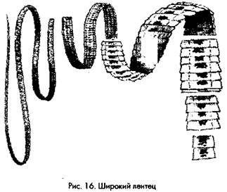 Этот гельминт распространен в регионах, где жители занимаются рыболовством. Широкий лентец относится к самым крупным ленточным гельминтам, его тело достигает в длину 15 и более метров. Паразит обитает в тонкой кишке человека и в корне подрывает иммунитет, способствует малокровию и образованию злокачественных опухолей (рис. 16).