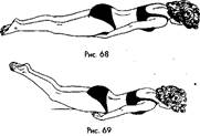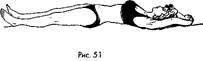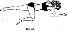 11. Поза «Крокодила» Это полное расслабление на животе. Идентична позе «Мертвого человека». Ложитесь на живот, согните одну ногу в колене и подтяните слегка к животу, как вам удобно. Руки согните в локтях, вытяните их вперед, пальцы свободны, ладони вниз. Голову на бок. Глаза закрыты. Полный покой 10-15 секунд (рис. 65).