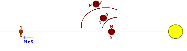 Восход Солнца на западе Написано 26 июля 2004 г. Я взял два магнита в форме стержня и провёл простейший опыт по моей гипотезе, поскольку я не знал, выравниваются ли они бок–о–бок независимо от взаимного расположения их полюсов. По моему сценарию земные полюса меняются местами, когда Планета Х выравнивается бок–о–бок с Солнцем в Эклиптике. Я не знал наверняка, позволит ли магнитам магнитное отталкивание/притяжение остаться в этой ориентации. Ну что ж, мой тест доказал, что позволит.