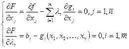 Рассмотрим частный случай общей задачи нелинейного программирования, предполагая, что система ограничений содержит только уравнения, отсутствуют условия неотрицательности переменных,