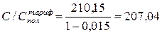 С/С = 84,06/0,4 = 210,15 руб/1000 ткм нетто экспл.