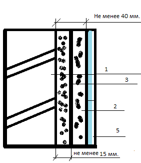 1. Кирпичная стена 2. слой штукатурки (производить непрерывно и перед нанесением «Пенетрона» выдержать не менее суток) 3. кладочная сетка с размерами ячеек 50х50мм или 100х100мм 4. материал «Пенетрон» в перерасчете на сухую смесь с учетом нанесения 2-х слоев составляет 0,8кг/м2 5. отделочный слой (наносится через 28 суток после обработки) Поверхность, обработанную «Пенетроном»следует защищать от механических повреждений и отрицательных температур в течение 3-х суток. При этом поверхность должна оставаться влажной, не растрескиваться и не шелушиться.