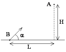 3.63. Тело брошено с земли под углом 60° к горизонту. Через 4 с скорость тела оказалась направленной под углом 30° к горизонту вниз. Найти время полета тела. (6 с) 3.64. Из точки А свободно падает тело (рис. 3.1). Одновременно из точки В под углом к горизонту бросают второе тело. Оба тела столкнулись в воздухе. Под каким углом к горизонту бросили второе тело, если 3.65. Мальчик, стоявший на расстоянии 0,8 м от дерева, бросил от земли мяч в грушу, висевшую на ветке. В то же момент груша сорвалась с ветки. Скорость мяча 5 м/с, направление на грушу составляет 60° к горизонту. На какой высоте мяч попадет в грушу? 3.66. Мячик, брошенный с балкона под углом 30° к горизонту, упал на землю со скоростью 3.67. Два тела бросили одновременно с одинаковыми начальными скоростями 20 м/с, направленными под углами 30° к горизонту, одно с высоты 30 м над поверхности земли, другое с земли из точки, находящейся точно под верхним телом. На какой высоте они встретились, если известно, что встреча произошла? (3,75 м) 3.68. Тело брошено со скоростью v0 под углом a к горизонту. Определить радиус кривизны траектории в точке бросания и в точке максимального подъема.