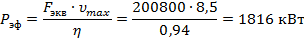Расчет мощности подъемного двигателя ведем исходя из данных диаграмм скорости и усилий [2]. Требуемая эквивалентная мощность двигателя: