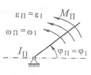 На рис изображено звено приведения(кривошип 1) В качестве такой модели рассматривается условное вращающееся звено – звено приведения, которое имеет момент инерции IП относительно оси вращения (приведённый момент инерции) и находится под действием момента сил МП (приведённого момента сил). В свою очередь.
