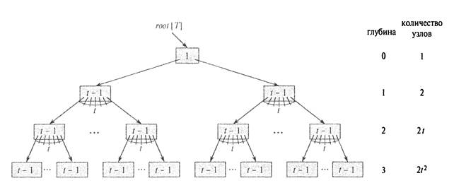 Рисунок 2. Б-дерево, высота которого равна 3, с минимально возможным количеством ключей.