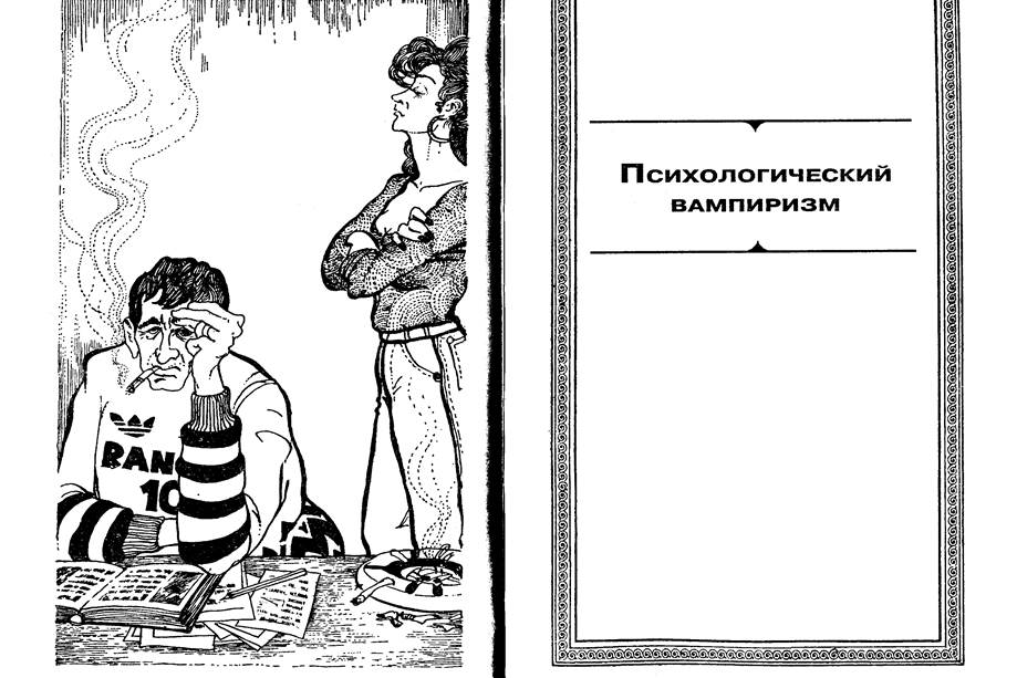 Эта глава посвящена отношениям, которые возникают при общении двух людей. Иногда уже на начальных этапах общения можно предсказать на много лет вперед, чем дело кончится. Поэтому психологически грамотный человек практически свободен от разочарований. Нет, от огорчений знание психологии не спасет, но отсутствие разочарований приведет к тому, что ответственность за свою судьбу вы возьмете на себя и в конце концов приобретете опыт. Желательно этот материал изучить после того, как освоена система психологического айкидо, где изложены основные принципы общения и сформулированы его правила и законы. Отношения между живыми организмами имеют три варианта: симбиоз, сапрофитироваыие и паразитирование. Отношения, которые сложились между цветами и пчелами, - типичный пример симбиоза - взаимовыгод' ного сотрудничества. Впрочем, слово «взаимовыгодный» можно было бы и опустить, ибо сотрудничество и есть взаимовыгодные отношения. Цветы дают пчелам нектар, а пчелы оплодотворяют цветы. Сапрофитирование - также отношения, при которых один из организмов пользуется отходами своего хозяина, не нанося ему существенного вреда. В нашем организме имеется много микробов-сапрофитов. Сейчас, может быть, я выступаю в роли сапрофита. Большого ущерба от приобретения этой книги вы не потерпели, а пользы никакой не получили. Паразитироваяие - это такой вид отношений, когда паразит живет за счет хозяина и приводит его к гибели. Иногда паразиты гибнут сами, если не найдут другого хозяина. Не могут найти хозяина, а работать все равно не хотят. Микробы покрываются оболочкой и ждут своего часа, люди лежат на диванах и мечтают, когда явится рыцарь (амазонка) на белом коне и умчит их в прекрасное далеко, или посещают благотворительные общества и живут на мелкие подачки. У людей встречается особый вид паразитировании, который я называю психологическим вампиризмом. Здесь нет никакой мистики. Это просто метафора, сравнение, которое помогает понять суть дела. Психологический вампиризм - поиск и использование людей в качестве защиты и источника энергии. Отличие от паразити-рования заключается в том, что на начальных этапах отношения выглядят как взаимовыгодное сотрудничество, иногда даже создается впечатление, что больше пользы получает донор. Что самое интересное, донор охотно предоставляет своему вампиру и защиту, и энергию, не замечая начала катастрофы. Сами же вампиры, выигрывая тактически, проигрывают стратегически, ибо с каждым витком вампиризма их навыки и способности к продуктивному сотрудничеству падают. В общем, ни вампир, ни донор не осознают, что сокращают и себе, и партнеру жизнь. Но давайте перейдем от теоретизирования к конкретному примеру. Несколько лет назад, когда я собирался уходить в отпуск, на один из последних приемов пришла миловидная женщина на вид лет 30-33 (на самом деле ей было 43). Она предъявила жалобы на затруднения при глотании, в результате чего за последние несколько месяцев потеряла в весе 15 килограммов, страх задохнуться в транспорте, из-за чего вынуждена постоянно пользоваться такси, что при мизерной зарплате рядового инженера делало ее привязанной к дому. Почти ежедневно у нее были подскоки артериального давления, сопровождающиеся головными болями, сердцебиениями, так что она почти каждый вечер вызывала «скорую помощь» для куп