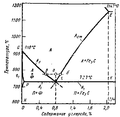44) аустенит эвтектоидного состава при медленном охлаждении превращается в … 1. перлит 2. ферррит + цементит 3. феррит 4. цементит