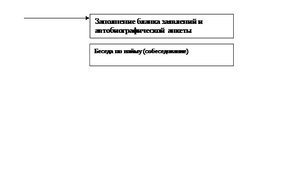 Рис.4. Ступени отбора персонала в организацию Предварительная отборочная беседа. Работа на этой ступени может быть организованна различными способами. Целесообразно, чтобы кандидаты приходили в отдел по управлению персоналом или на место работы. В данном варианте они представляют справку-резюме, в дальнейшем специалист отдела кадров или линейный менеджер проводят с ними предварительную отборочную беседу. При этом на предприятиях применяются некоторые общие правила беседы направленные на выяснение образования претендента. Оценку внешнего вида и определяющих личных качеств. Затем удачливые заявители направляются на следующую ступень отбора, иногда зная, что отсутствие какой либо необходимой характеристики уменьшает шансы на то, что их будут серьезно рассматривать как кандидатов на вакантное место. В малых предприятиях и организациях предварительная отборочная беседа может проводиться вместо основной беседы (собеседования) по найму. Заполнение бланка заявления и автобиографической анкеты. Претенденты, прошедшие предварительную отборочную беседу должны заполнить бланк заявления и анкету. Количество пунктов анкеты должно быть минимальным и в них должна запрашиваться информация, более веско влияющая на производительность будущей работы претендента. Данные могут относится к прошлой работе и складу ума, чтобы на их основе можно было провести психометрическую оценку претендента. Пункты анкеты должны быть сформулированы в нейтральном стиле и предполагать любые возможные ответы, включая возможность отказа в ответе. Анализ анкетных данных в сочетании с другими методами отбора выявляет следующее: · соответствие уровня образования заявителя минимальным квалификационным требованиям; · соответствие практического опыта характеру должности; · наличие ограничений иного рода на выполнение должностных обязанностей; · готовность к принятию дополнительных нагрузок (сверхурочные работы, командировки); · круг лиц, которые могут рекомендовать работника, помочь наведению справок и получению дополнительной информации. При отборе на должности руководителей применяют более подробные анкеты, чем при найме рядовых служащих. Беседа по найму(собеседование). Исследования показывают, что более 90% решений по отбору претендентов принимаются с включения процедуры собеседования. Существует несколько типов собеседования: · проводимые по схеме (тип А). Готовится список вопросов, и от него не отклоняются. Многие вопросы имеют перечень готовых вариантов ответа, и проводящему беседу, приходится только отмечать ответы заявителя. Беседа имеет характер, а полученная информация не дает широкого представления о заявителе и не позволяет приспособить под беседы к ответам заявителя; · слабо формализованные (тип Б). Готовятся только основные вопросы, но проводящий беседу, может также приготовить и прощупывающие вопросы. Этот метод требует большой подготовки от ведущего беседу, он допускает большую гибкость, чем беседа типа А. Служащий может задавать вопросы в тех областях, которые в данном конкретном случае заслуживают большего внимания. · выполняемые, не по схеме (тип В). Он не требует особой подготовки. Проводящий беседу служащий составляет список тем, которые следует затронуть, а иногда не делает и этого. Главным образом (преимуществом) 