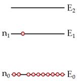 Рисунок 1 Упрощенные принципиальные схемы энергетических уровней активных центров. Обозначим, n0 и n1 - число активных центров в единице объема активной среды, на нижнем и верхнем рабочих уровнях соответственно. "n"0 и "n1" принято называть - заселенностью рабочих уровней.