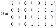 Очевидно, столбцы с номерами 5, 6 и 7 линейно независимы. Используя этот факт, находим порождающую матрицу