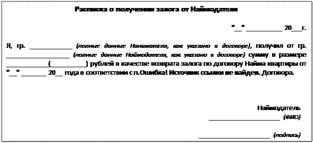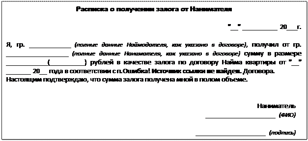 Приложение 4 "Форма расписки о получении залога от Нанимателя" к договору найма квартиры от "___" _________ 20__ года