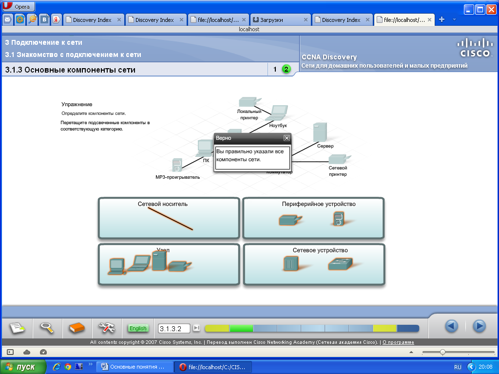 В сеть могут входить различные компоненты, например, персональные компьютеры, серверы, сетевые устройства и кабели. Эти компоненты можно разделить на четыре основные категории: узлы; совместно используемые периферийные устройства; сетевые устройства; сетевые носители.