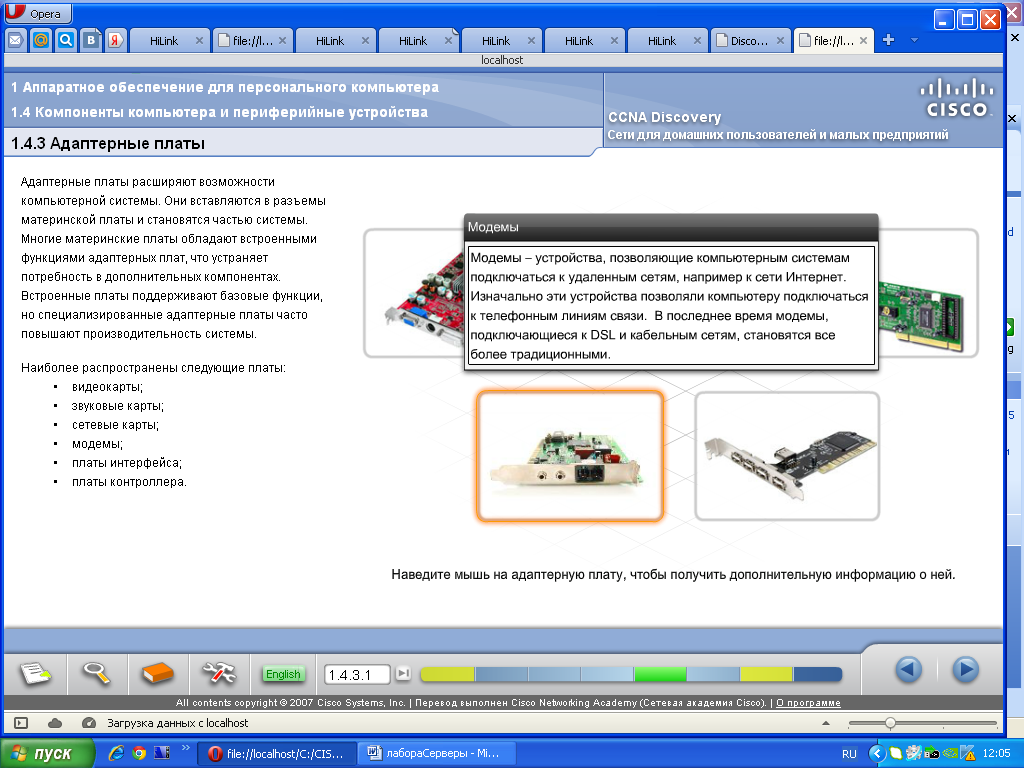 Модемы –устройства, позволяющие компьютерным системам подключаться к удаленным сетям, например, к сети интернет. Раньше эти устройства позволяли комьпютеру подключаться к телефонным линиям связи. В последнее время модемы, подключающиеся к DSL и кабельным сетям, становятся все более традиционными.