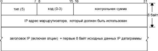 На рисунке 9.4 показан формат сообщения ICMP о перенаправлении.