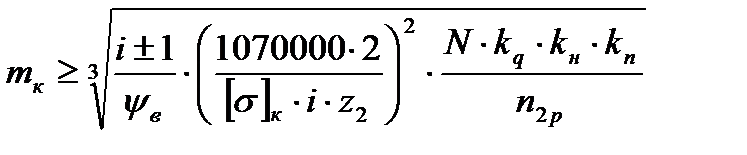 Проектировочный расчет на контактную прочность проводится по формуле: