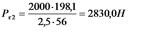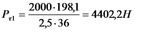 Тангенциальная сила действующая в зацеплении: