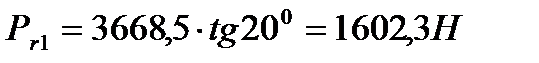 Радиальная сила действующая в зацеплении: