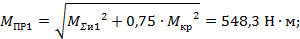 По полученным значениям построим эпюры моментов: МХ, МУ, МΣ, МКР, МПР. Определение диаметра вала в опасном сечении: