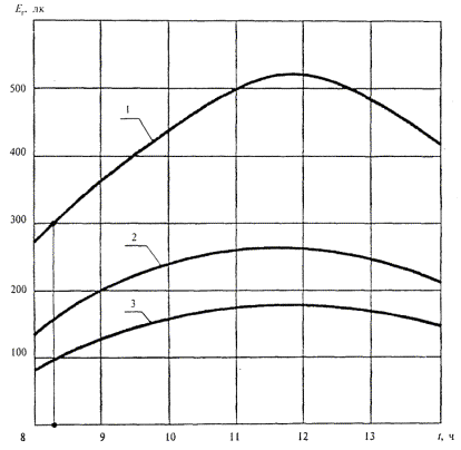 Решение. 1 Из таблицы В.1 приложения В выписывают значения наружной освещенности в течение дня для сентября