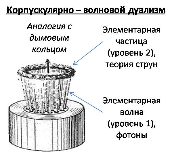Формирование первого уровня начинается со взаимодействия планковских частиц и образования первого "вихря" на следующем уровне, состоящем из 100 000 таких единиц в длину – элементарной волны (хаос взаимодействия метагалактик "разряжается" в порядок):