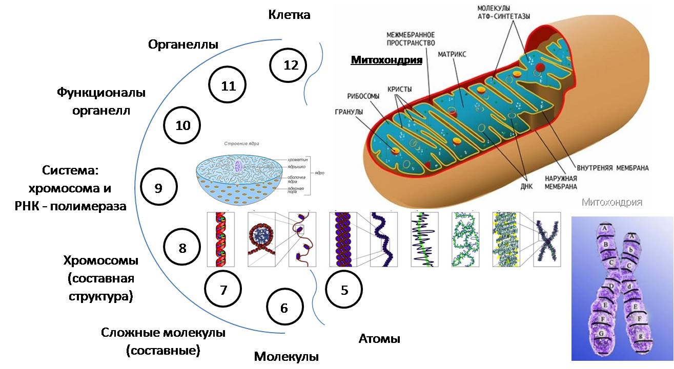 Порядковый номер – последовательность образования систем. Видим, что число независимых систем совпадает с числом пар хромосом! Человек – это единый организм симбиотических систем. Каждая система (фрактал) – это "отдельный" организм. Каждая из них работает в теснейшей связи. Мы себя ощущаем только как нервную систему. Если бы произошёл сбой и появилась бы дополнительная нервная система (мозг) – это был бы другой организм в теле. Аналогично и органеллы в клетке – симбиотически связаны и взаимодействуют в рамках определенной структуры – мембраны и др. Каждая пара хромосом задает свой фрактал. Одна задает "структуру", другая – "алгоритм" (они "переплетены", связаны едино). Элементарные организмы могут полноценно существовать с одной парой хромосом. Природа стремится к оптимальному количеству хромосом. Вся эволюция носит скачкообразный характер – "квантовая" эволюция, связанная с образованием и введением дополнительных систем – фракталов (образование новых пар хромосом) или небольших изменений в них. С дальнейшим действием естественного (отбор среды) и полового отбора (отбор вида). Скачёк происходит путем деления самой развитой системы. Когда система сильно усложняется, происходит увеличение информации её структурирующей (масса хромосомы). И теперь, когда информации в хромосоме чересчур много, происходит разрыв хромосомы на части (на неравные части). Можем проследить этот процесс описанием появления Евы. Религия – это сказка. "Сказка ложь, да в ней намек". В Библии в иносказательной форме (учитывая многочисленные переводы и интерпретации) о сотворении мира и человека сказано: только на 7-й день образовались Адам и Ева. Это действительно так, человек – это биосистема – 7-й уровень. Явно видны описания в стихе 20 (день – это уровень основного периодического закона) на 4-й день: "птица полетит над землёю" – это описание электрона; "да полетят над землёю по тверди небесной" – это описание ядра атома. Далее на пятый день (пятый уровень) – в стихах 24, 25 можно тонко заметить описание начала разветвления на неживую и живую природу (уже на следующем – 6-м уровне – имеются четко разграниченные живая и неживая природа). Описание стиха 27 (26) – образование хромосом, разграничение внешней и внутренней эволюции, их взаимосвязь (по образу и подобию), начало полового размножения; начало образования биосистем; стих 27 описывает состояния между 5-м и 6-м уровнями, т. е. как раз и описывает процессы действия хромосом (внутри клетки). Описание образования Евы "из ребра плоти Адама": это описывается процесс деления самой крупной хромосомы – нервной системы (у наших 22-хромосомных предков) в тот период на две неравные части. Ребро в данном случае понимается как маленькая часть от большой хромосомы. Это и положило начало 23-хромосомным людям. Эта новая система (эпифиз), одновременно с самым крупным и дифференцированным мозгом у приматов, дала колоссальный скачек – появление сознания. Эпифиз начал управлять и корректировать деятельностью мозга. Плод познания – осознанные действия. Искушение Евой Адама описывает начало бурного познавательного процесса Адамом – нервной системой. Очевидно, системы развивались одна за другой, одна отпочковывала другую (в схеме прослеживается внешние эволюционные пути развития – выход организма из воды на сушу):