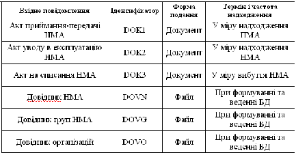 Вхідна інформація. Вхідна інформація для розв’язання задачі – первинні документи, файли з довідкової бази даних. Перелік і опис вхідних повідомлень для розв’язання задачі наведено в таблиці 4.3