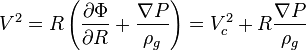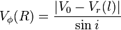 Здесь Φ — гравитационный потенциал, а ρg — плотность газа. Для разных компонентов галактики скорость вращения оценивается по-разному. Для газа — по доплеровскому смещению эмиссионных линий. Для звёзд — по доплеровскому смещению абсорбционных линий звёзд. Схема получения скорости вращения следующая. Непосредственно получаемая из наблюдений скорость — это сумма скорости движения галактики как целого и скорости внутреннего движения. Обычно скорость галактики в целом (V0) отождествляется со скоростью движения центральной области. Для далёких галактик эта скорость обусловлена хаббловским расширением Вселенной, собственная скорость пренебрежимо мала. Скорость, получившаяся после учёта скорости движения галактики как целого, — скорость по лучу зрения (Vr), и чтобы вычислить скорость вращения галактики на данном расстоянии, необходимо учесть эффекты проекции. Для этого необходимо знать угол наклона оси галактики к лучу зрения i, а также угол φ между большой осью галактики и прямой, проходящей через центр галактики и наблюдаемую точку. Таким образом, чтобы перейти от Vr к Vφ, необходимо знать пять параметров: скорость движения галактики V0, углы i и φ, две координаты центра галактики (относительно любой точки изображения). Если галактика выглядит осесимметричной, то задача упрощается, так как углы ориентации и положения центра можно вычислить по распределению яркости диска. И если щель спектрографа расположить вдоль её большой оси, можно получить: