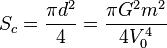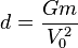 где V — текущая скорость звёзд (скорости должны быть одинаковы из-за соображений симметрии), r — расстояние между звёздами, V0 — скорость на бесконечности до взаимодействия, а G — гравитационная постоянная. Будем считать, что звёзды испытали столкновение, если в момент их сближения кинетическая энергия удвоилась. Тогда, подставив значение прицельного параметра d в уравнение, написанное выше, получим: