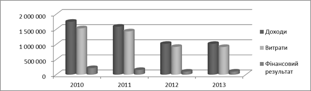 Рис. 2.24 Динаміка доходів, витрат та фінансових результатів 2010 – 2013 рр