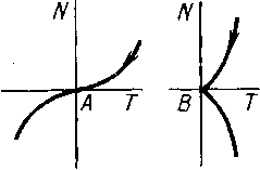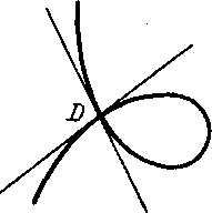· На рисунках снизу: точка А – точка перегиба, в которой кривая пересекает касательную, точка В и С – точки возврата (В – точка возврата первого рода, С – точка возврата второго рода), D – двойная точка (точка самопересечения), Е- точка самоприкосновения.