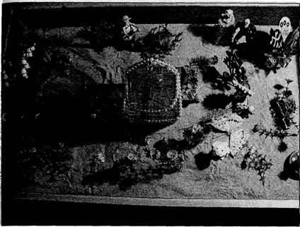 Часть шестая Чаще всего человек, завершая сеанс, выравнивает пространство, создавая из него единое целое. Ящик для песочной терапии — прямоугольный, провоцирующий своей формой к изменениям. В психологической расшифровке прямоугольная фигура — знак человека, стремящегося переменить свое сегодняшнее положение дел, свое состояние, свои отношения. В этой провокационной форме песочного ящика проявляется на поле то, что мешает свободному развитию. А изменение есть наше естественное состояние, органическое, связанное с физиологией. Мы все время меняемся. Растем. Взрослеем. Надеваем новые одежды. Узнаем новых людей, страны, события. Наше сознание развивается, расширяется память. Накопленная информация меняет картину мира. Человек, оставаясь пластичным, легко ориентируется в происходящих переменах. Ведь меняются даже законы и каноны. И если возникает нечто, что мы не в силах осознать, это может стать препятствием к дальнейшему развитию и достижениям. Так что если фигурки расставлены вдоль стенок ящика и образуют прямоугольную композицию, это говорит о том, что человек хочет что-то исправить, но не понимает, как это сделать. Треугольный рисунок композиции представляет нам человека целеустремленного, способного достичь своей цели. Треугольник может быть образован из трех предметов одного цвета среди других. Общая линия из фигурок может составлять треугольную форму. Треугольник, как выпущенная стрела, направлен в одну точку, туда, где обозначена его цель. Композиционный треугольник может указать на значимое место в композиции. Это может быть актуальной проблемой или целью. Естественно, что решение проблемы тоже может быть целью. Осуществление такой цели откроет путь для решения действительной жизненной задачи. Композиция хаоса проявляется у человека в период депрессий, переходных периодов. Хаос может быть организован расположением фигурок. Фигурки могут быть просто брошены в поле или навалены кучей. В одной работе фигурки были расставлены правильными рядами, но цветовой хаос не соответствовал выстроенному порядку и выдавал желание человека быть менее ограниченным и более свободным. Композиция спирали обнаруживает на поле объемное восприятие мира. Принятие мира во всех или многих его проявлениях (с. 101). Композиция пространства