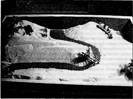Пластичные линии говорят о человеке общительном, психологически мягком, добром, контактном. Композиция песочной картины дает общее впечатление о внутреннем состоянии человека. Все, что в данный момент находится в душе, выносится на поверхность песочного поля. Поле может быть ровным. Следы на поле могут производить впечатление ран и шрамов. Дороги и реки показывают, куда завели проблемы. Горы показывают, как трудно и напряженно человек достигает своих целей. Мы заметили, что открытые пространства соответствуют людям открытым, общительным, контактным. Люди, обремененные проблемами, организуют свое поле так, чтобы были изолированные места, закрытые изгородями, или создают окруженные водой острова. Вландшаф-те, как в зеркале, отражаются психические процессы, которые принимают вполне определенные значения. Язык поля, закодированный в линиях пейзажа, способствует открытию новых областей исследования, полных неожиданностей, превосходящих самые смелые ожидания своих создателей. Композиция пространства