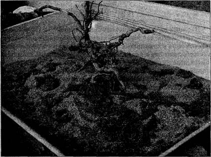 Оставляя неизменным центр, она заменила некоторые фигурки, некоторые переставила. Композиция называлась «Ведьма». «Слева — мистика. Мне нравится все мистическое, — сказала она. — Я ищу в интернете тексты и наслаждаюсь этим». — «А что это затри фигурки рядом?» — «Это — три в одном. Первая — элегантное светское, вторая —домашнее, третья — феечка, волшебная». Мы заметили, что домашнее спит, и сообщили ей об этом. Она согласилась. Также мы заметили, что в сегодняшнем дне появились несколько предметов: кувшины, чаши и сердечко. На этом сеанс был завершен. Состояние Год назад она выставила в центре поля сухое дерево, сказала, что композиция называется «Я», побрызгала его водой и ничего не захотела менять. Год назад она утверждала, что это мертвое дерево прекрасно. Мы не настаивали на переменах. Но мы очень надеялись, что это древо оживет в реальности, расцветет и даст плоды. Достаточно было того, что она увидела со стороны, что стало с ее душой. И хотя она сопротивлялась и утверждала, что сухое дерево — это прекрасно, она видела воочию свое реальное состояние. Для возрождения дерева нужно было время, и мы встретились с ней через год.