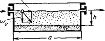 должны соблюдаться два основных требования: 1)время пребывания элементов потока в аппарате должно быть равно или больше времени осаждения частиц; линейная скорость потока в аппарате должна быть значительно меньше, чем скорость осаждения. Несоблюдение первого приводит к тому, что частицы не успевают осесть, а второго – к тому, что возникающие вихревые токи поднимают осаждающиеся частицы. Установим связь между производительностью отстойной камеры и ее размерами. Обозначим (рис. 4.4): Vсек – производительность камеры м3/сек; w0 – скорость осаждения частицы в м/сек; t0 – время осаждения частицы в сек; w – линейная скорость потока в аппарате в м/сек; a, b, h – размеры камеры в м. Рабочий объем аппарата может быть определен по уравнению: Vр = a × b × h = Vсек× t0 (4.1) Но t0 = h/w0, тогда Vсек = a × b ×w0 (4.2) Произведение a × b = F есть площадь осаждения и, следовательно, производительность отстойного аппарата равна произведению площади осаждения на скорость осаждения. Скорость осаждения, необходимая для расчета определяется закономерностями гидрокинетики через критериальное уравнение, связывающее критерии Рейнольдса и Архимеда. Аппараты, предназначенные для проведения процессов отстаивания, обычно называются отстойниками. Отстойники для пьлей. Все отстойники для пылей являются непрерывно действующими или полунепрерывно действующими аппаратами. Газовий поток проходит через аппарат непрерывно, а осевшая пыль выгружается из него или непрерывно, или периодически. Простейшим отстойником является отстойннй газоход — расширенная часть