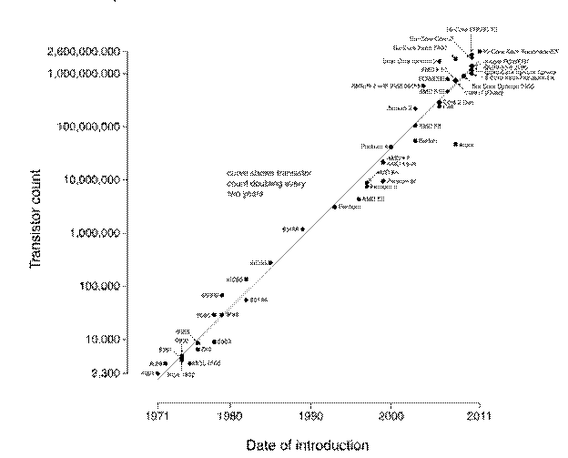 Рисунок 4.1 – Закон Мура (предсказание на период с 1971 года по 2011 год)